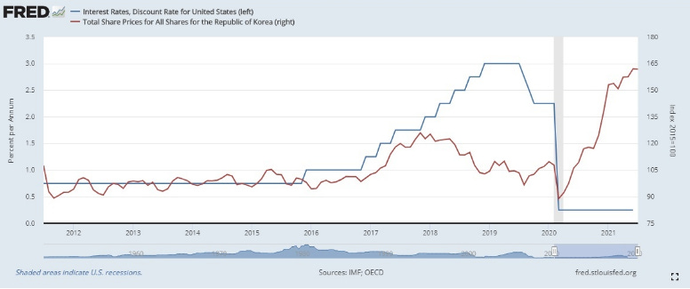 그 이후, 트럼프 행정부의 코로나19 팬대믹 대응을 위한 Operation Warp Speed가 시작됩니다. 제약 관련 투자와 더불어 제로금리 및 무제한적 양적완화가 진행되었는데요. 이 바람을 타고 국내 증시는 이상할 정도로 급등하게 됩니다. 국내 증시 뿐 아니죠. 전 세계 증시가 - 특히 나스닥 기술주 - 단체로 눈이 빙글 돌아버린 사태가 벌어졌습니다. 대 주식시대가 개막됐죠.