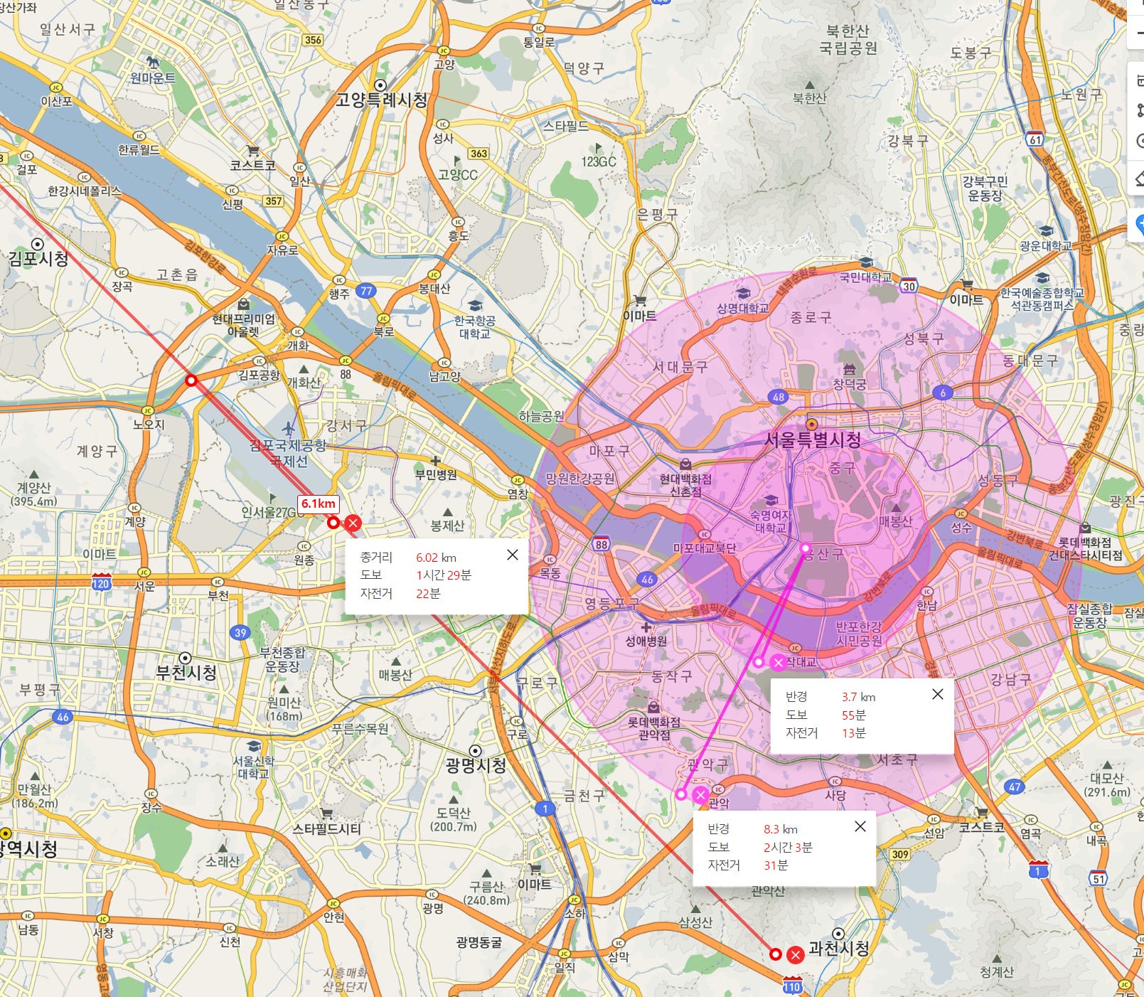 놀랍게도 서울 강남지역의 절반정도가 P-73B에 해당되게 되며, P-73A로 인해 한강 회랑이 막히게 된다! 이것만 보면 별 문제가 아닌것 같지만 사실 큰 문제다 진짜 문제는 따로 있다.