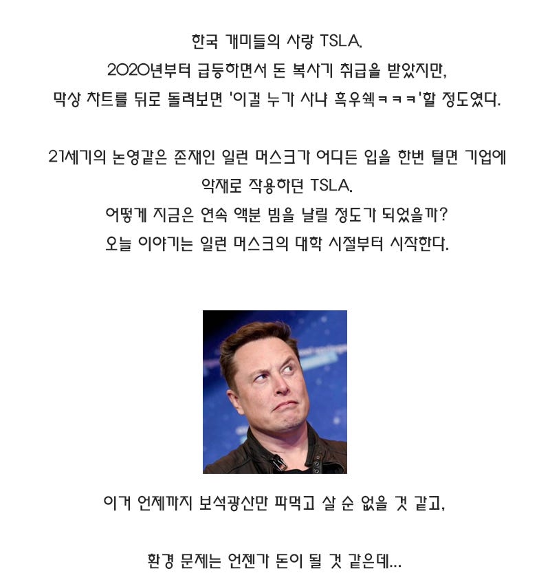 TSLA, 팬대믹과 함께 To the Mars~~!백화선생Mar 30, 20223Share코로나 확진이 되어서 온 몸이 아프다보니, 줄글보다 뇌 비우고 작업할 수 있는 간단한 이런 문법의 교양성 포스팅을 쓰게 되네요. 얼른 회복해서 심도깊은어려운 분석을 같이 할 수 있도록 하겠습니다.이번 포스팅도 잘리지 않은 원본 이미지는 이 링크를 클릭하셔서 받으실 수 있습니다.